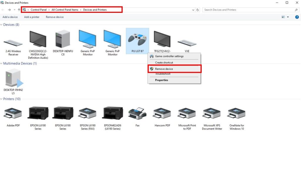 → Right-click the device → Remove device