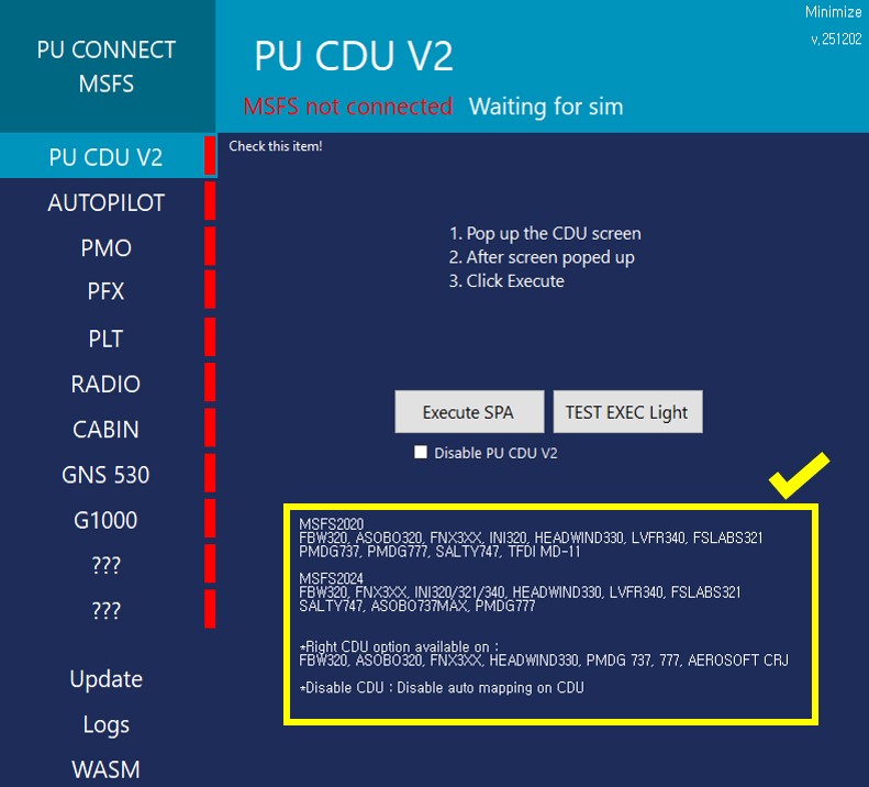 2. Confirm that you have loaded a supported aircraft in your simulator.